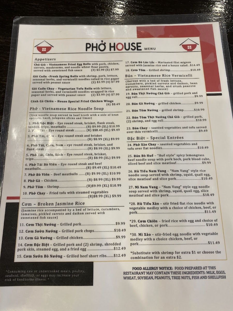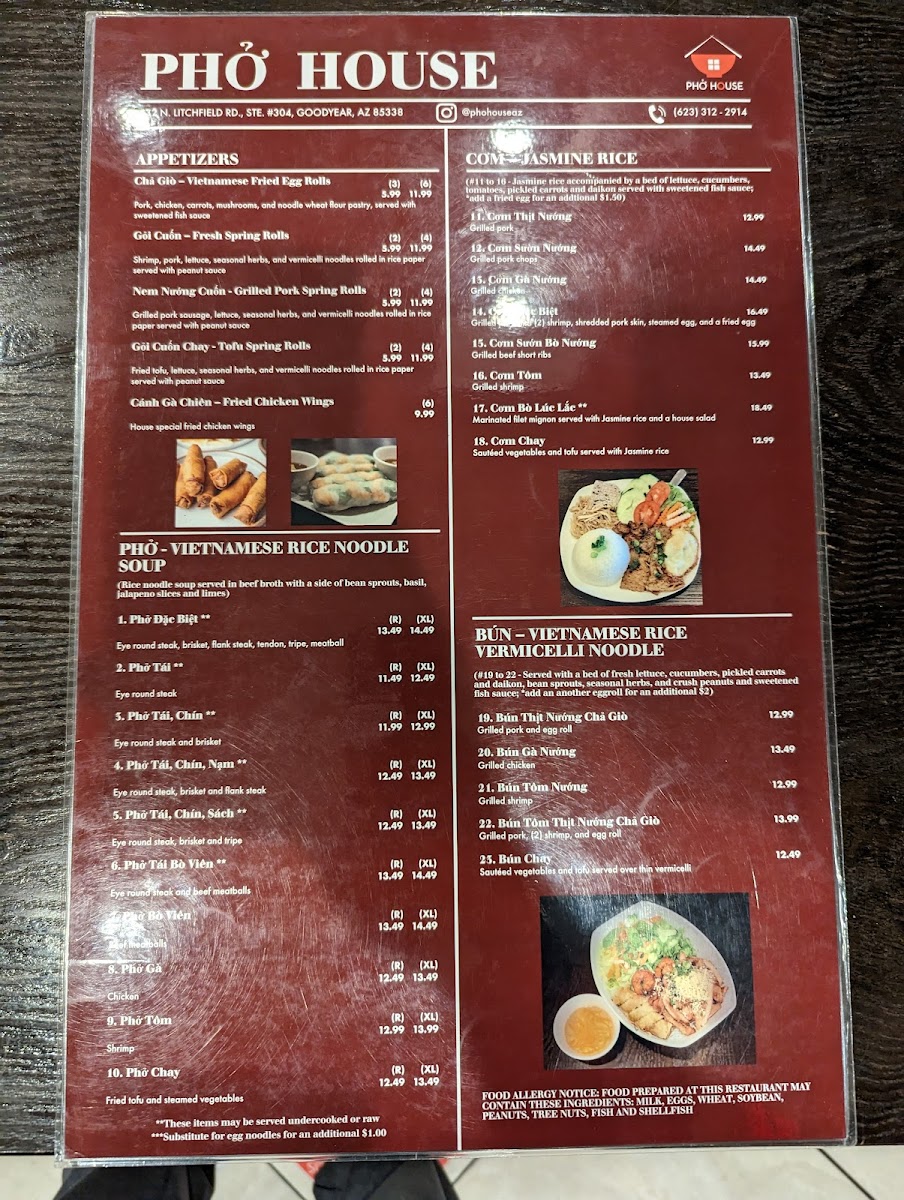 Phở House Restaurant Menu